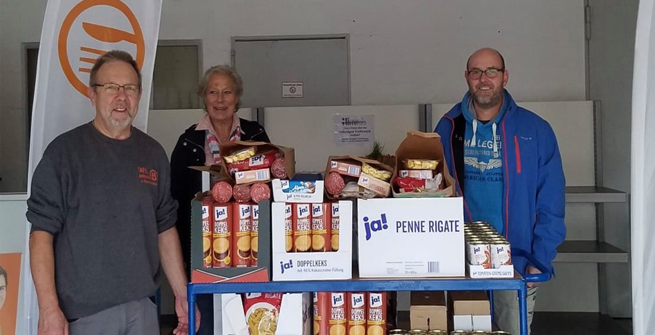 Andreas Gottschalk und Christian Siemers hatten 60 Tafel-Tüten gekauft und den überraschten Tafel-Mitarbeitern übergeben. Die Freude war groß und die haltbaren Lebensmittel werden sicherlich bald neue Besitzer finden.